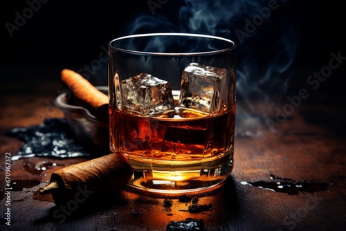 Sophisticated Evening Delight. Aromatic Cognac, Smooth Cigar, and the Alluring Mood of the Night