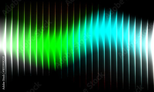 Sound waves in different colors create a visual representation of audio energy and vibrations in a dark space
