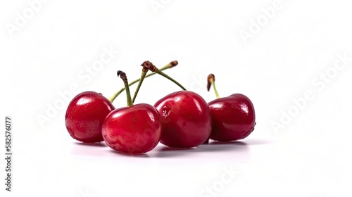 Sour cherry fruit isolated on white background created with generative AI technology