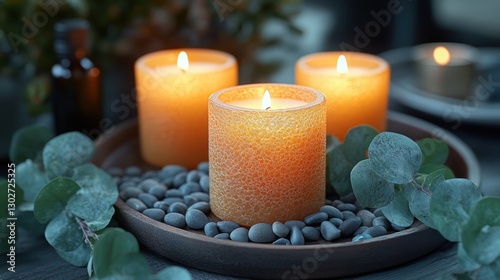 Spa setup with glowing candles, spa towels, and essential oils – a perfect spa ambiance for relaxation, aromatherapy, and wellness retreat