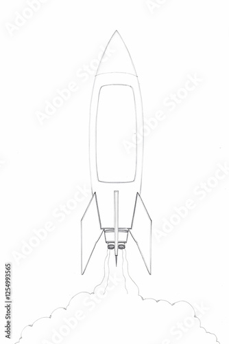 Space Rocket Launch with Fire Exhaust Against Empty Sky Background