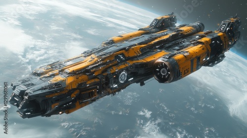 Spaceship orbiting Earth, atmospheric clouds