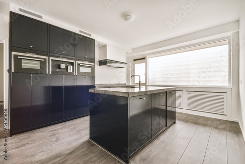 Spacious bright open plan kitchen with windows