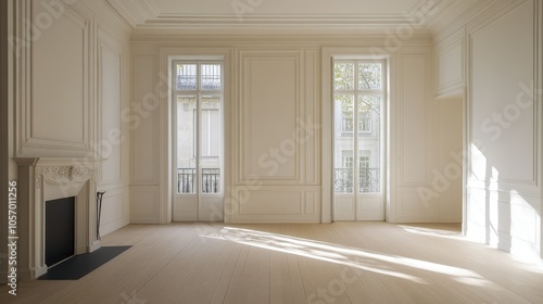 Spacious, empty room with sunlight pouring in through a single window, illuminating the clean, white walls and light wood flooring.