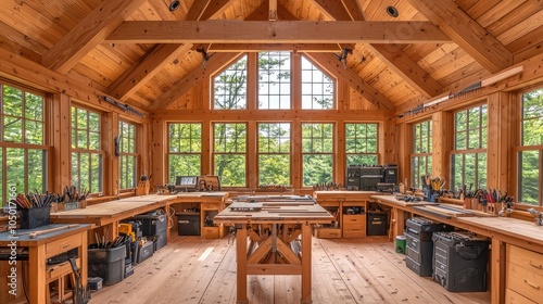 Spacious Woodworking Studio with Neatly Arranged Tools