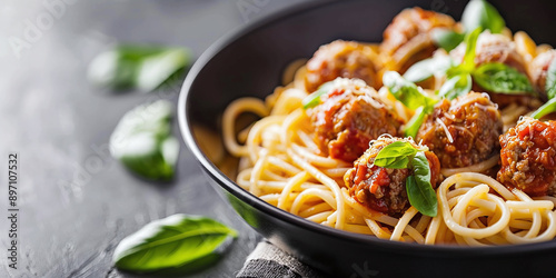 spaghetti bolognese with small meatballs