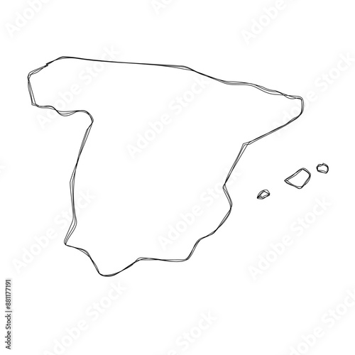 Spain country simplified map.Thin triple pencil sketch outline isolated on white background. Simple vector icon