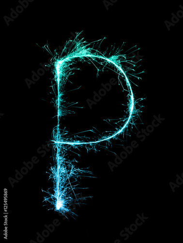 Sparkler firework light alphabet P at night