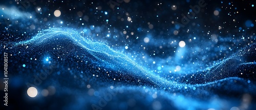 Sparkling Blue Particles Flowing on Dark Background Representing Technology Science Concept