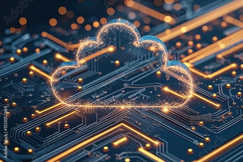 Sparkling Cloud Symbol with Circuit Designs for Data Synchronization and Connectivity in Digital Technology