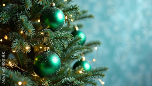 Sparkling Emerald Green Christmas Tree with Fairy Lights and Glass Ornaments, Festive Holiday Magic