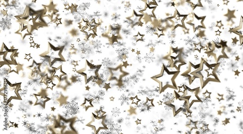 Sparkling gold stars and snowflakes on white. Perfect for holidays, celebrations, and winter themes.