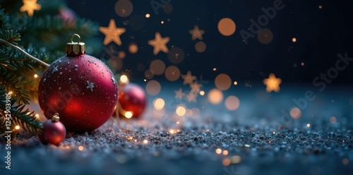 Sparkling ornaments scattered on a dark background, Winter Wonderland, Winter Scene, Holiday Decor