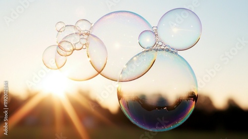 Sparkling Soap Bubbles at Sunset Rainbow Reflections Nature Photography