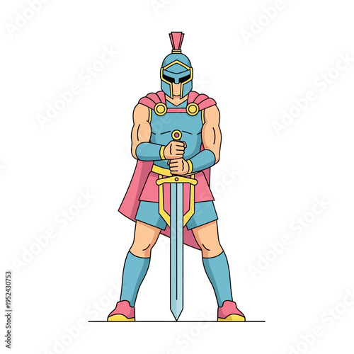 Spartan Warrior Holding Sword, Ancient Greek Soldier Cartoon Character