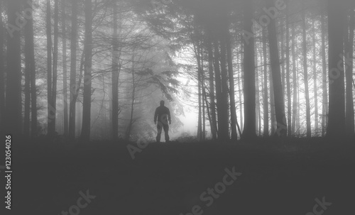 Spatziergang im Wald mit Nebel