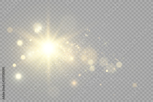 Special lens flash, light effect. The flash flashes rays and searchlight. illust.White glowing light. Beautiful star Light from the rays. The sun is backlit. Bright beautiful star. Sunlight. Glare.
