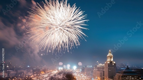 Spectacular Fireworks Light Up the Night Sky Over Cityscape