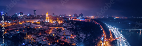 Spectacular nighttime skyline of a big city at night. Kiev, Ukraine