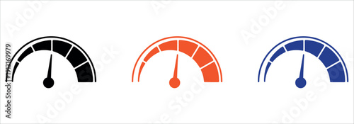 Speedometer Gauge Performance and Progress Level Icons Set Vector Illustration.