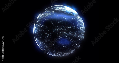 Sphere atom array image. Digital computer visualization. Generative picture. 3D illustration, 3D rendering.