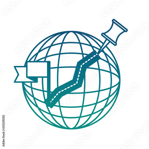 sphere planet with pin pointer and flag vector illustration design
