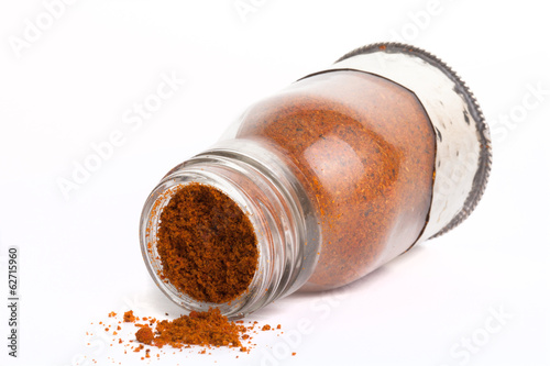 spices in glass jar on white background