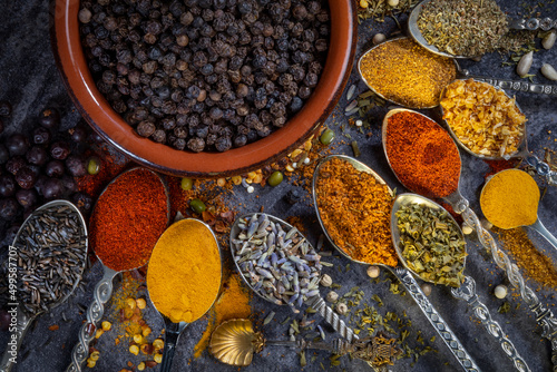 Spices used to add flavor and seasoning to cooking.