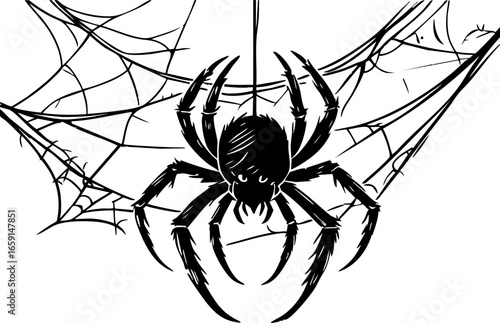 Spider in web displaying intricate design indoor setting graphic monochrome style close-up view nature's art