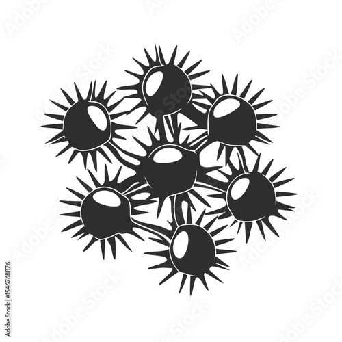 Spiky Sea Urchin Cluster Silhouette Illustration. Marine Life And Ocean Biodiversity Isolated Vector Illustration