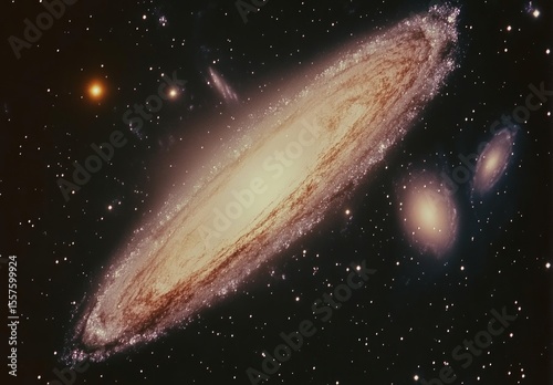 Spiral Galaxy in Deep Space with Bright Core and Surrounding Stars