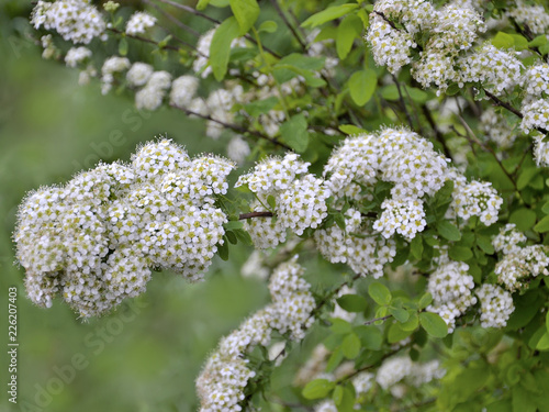 Spirea flowering branch with delicate small white flowers