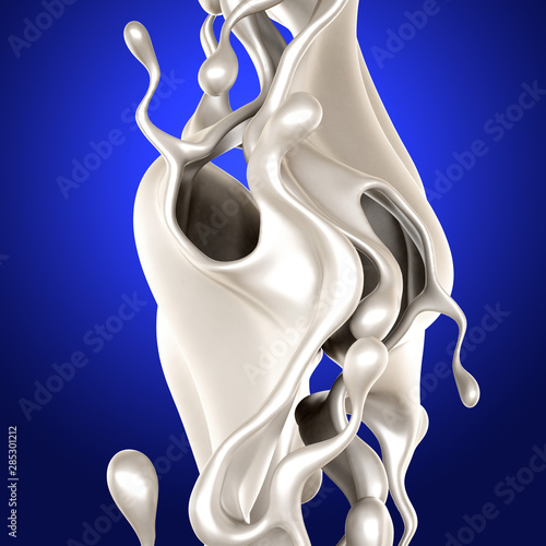 Splash of thick white liquid, milk. 3d illustration, 3d rendering.