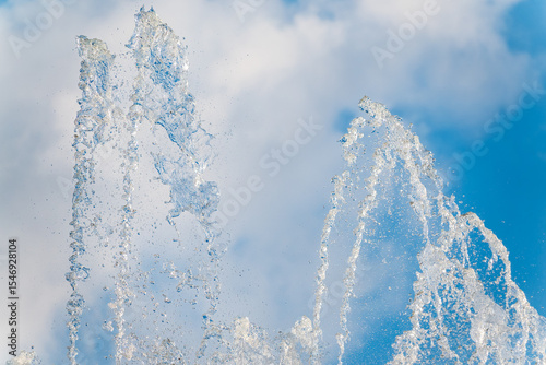 Splashes and jets of water against light background.