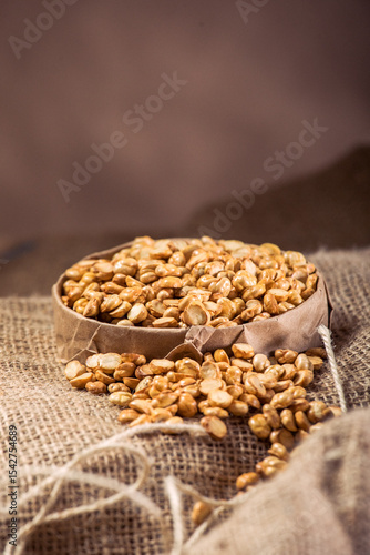 Split Roasted Chickpeas on Burlap Fabric – Rustic Healthy Snack