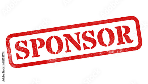 Sponsor red rubber stamp isolated on transparent background with distressed texture effect
