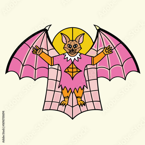 Spooky bat character illustration with pink wings for Halloween themed design projects and creative content