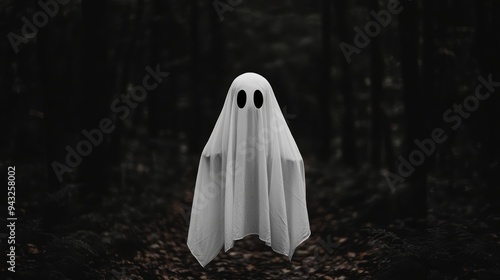 Spooky Ghost amidst Forest Path in Eerie Night Darkness Ghost Haunted Atmosphere