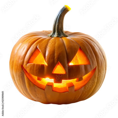 Spooky halloween jackolantern pumpkin glowing brightly dark background fun on transparent background
