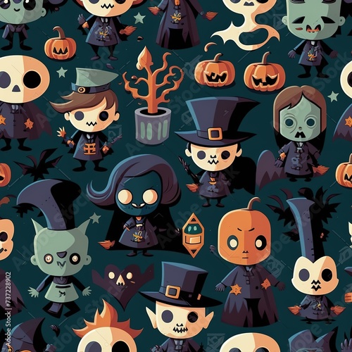 _Spooky_halloween_cartoons_cutouts_seamless_pattern ai generative high quality image