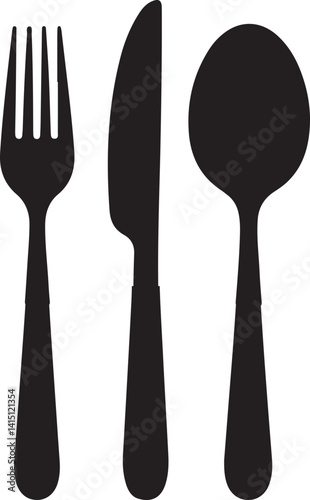 Spoon, knife, fork silhouettes icons.