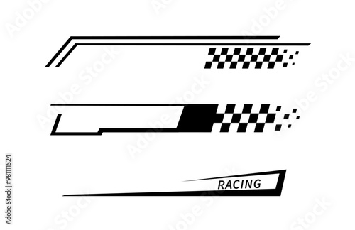 Sport car stripe stickers. Racing stripes. Race flag. Checkered flag. Stickers car decal template. Automotive graphics. Racing sport checkered pattern. Vector illustration