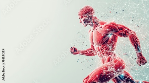 Sports science study visualization Neural network in athlete body activity concept plain background