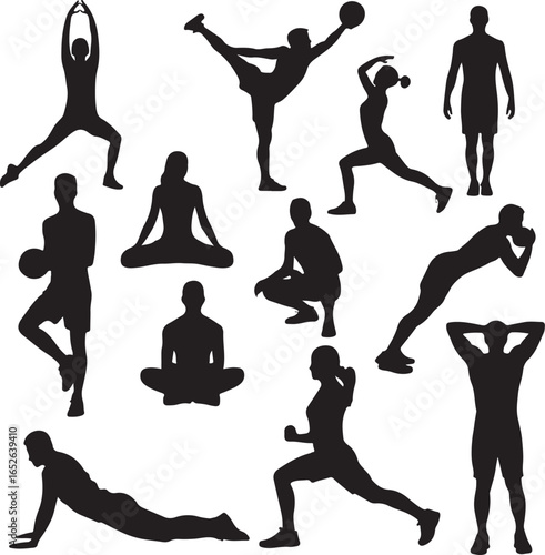 Sports Silhouette Vector Set – Athletes in Action Football, Basketball, and Running Player Silhouettes Fitness and Sports Vector Bundle for Logo and Design