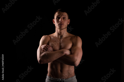 Sportsman Hands Crossed Topless. Healthy Life, Medical protection, Sports Concept