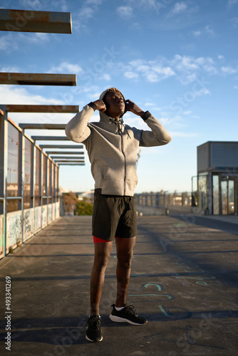 Sportsman standing on bridge in city
