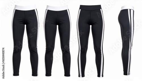 "Sportswear leggings in stretch fabric with side stripes, isolated on white background, activewear fashion"