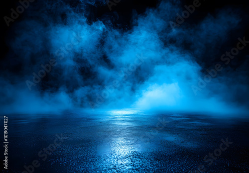Spotlight Shining on Empty Dark Stage with Atmospheric Smoke design