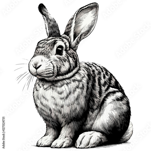 spotted rabbit in black and white ink drawing style