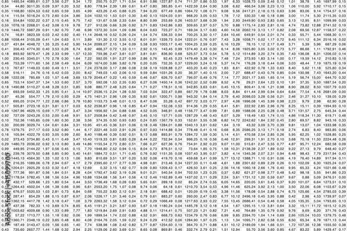 Spreadsheet with complex digital data. Lots of numbers and information in black font with white background.